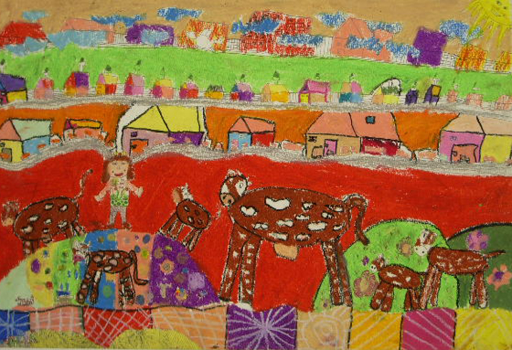 「世界の約80カ国くらいから子どもの作品が一同に集められるコンクールで45年の歴史がある。公益財団法人美育文化協会が主催。アーカイブ作成のため作品撮影の許可をいただいたもの。」